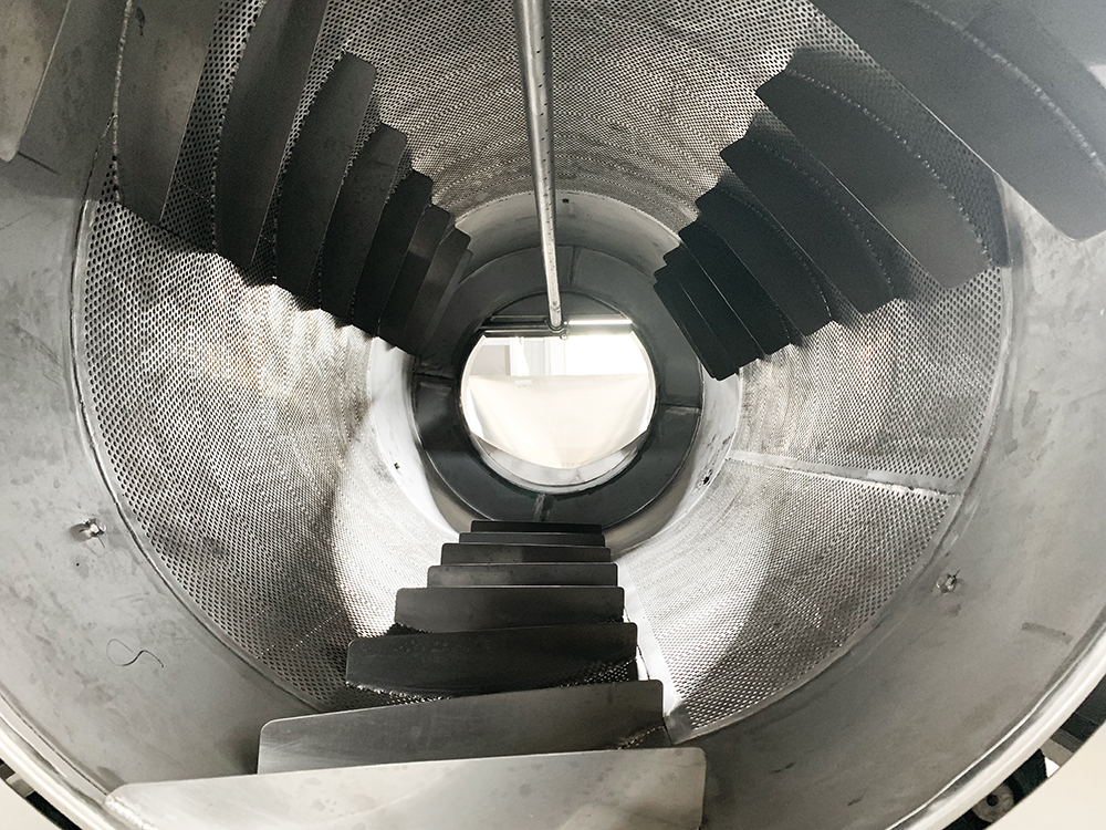 物料由進料斗送入,啟動高壓水泵、轉(zhuǎn)動筒體,物料在被筒體內(nèi)螺旋板推進的同時進行漂洗、噴淋和高壓水沖洗。