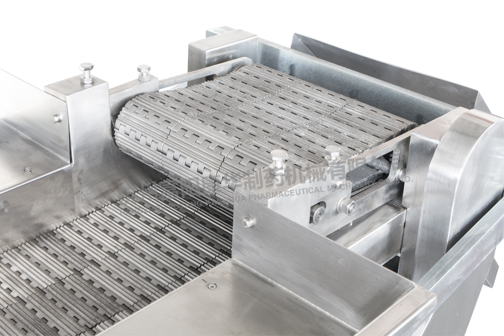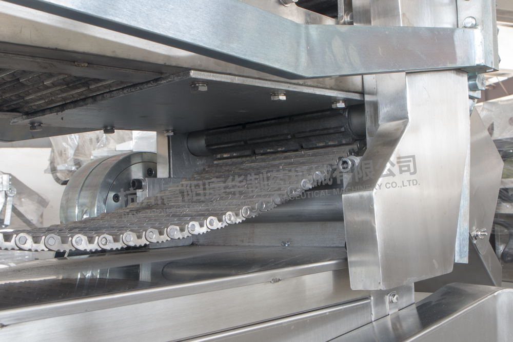 采用不銹鋼鏈條連續(xù)輸送物料,操作簡單,生產(chǎn)效率高;該機具有運轉(zhuǎn)平穩(wěn)、噪音低、維修方便等特點,符合GMP要求。